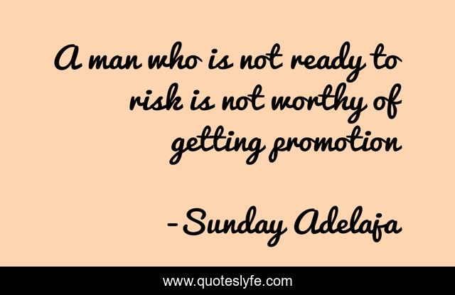 This page presents the quote "A man who is not ready to risk is not worthy of getting promotion". Author of this quote is Sunday Adelaja. This quote is about promotion, sacrifice, life, success, risk,.