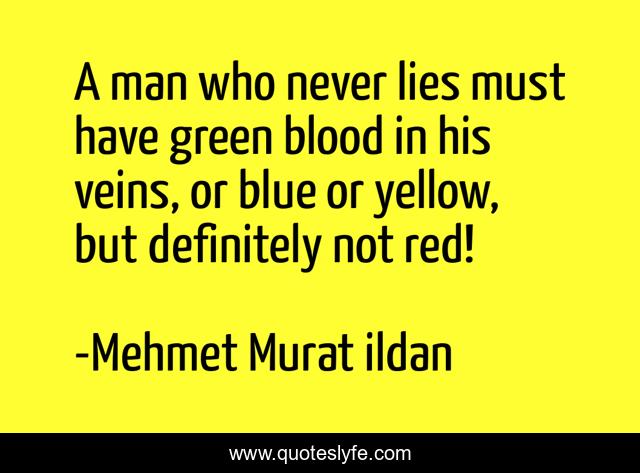 This page presents the quote "A man who never lies must have green blood in his veins, or blue or yellow, but definitely not red!". Author of this quote is Mehmet Murat ildan. .