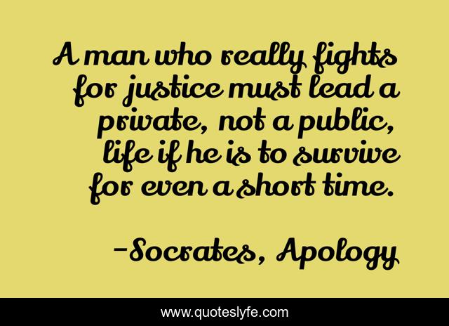 This page presents the quote "A man who really fights for justice must lead a private, not a public, life if he is to survive for even a short time.". Author of this quote is Socrates, Apology. .