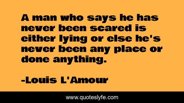 This page presents the quote "A man who says he has never been scared is either lying or else he's never been any place or done anything.". Author of this quote is Louis L'Amour. .