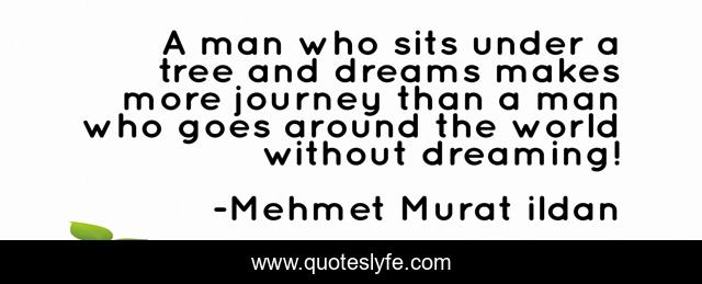 This page presents the quote "A man who sits under a tree and dreams makes more journey than a man who goes around the world without dreaming!". Author of this quote is Mehmet Murat ildan. .