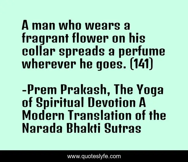 "Prem Prakash, The Yoga of Spiritual Devotion A Modern Translation of the Narada Bhakti Sutras Quotes." Quoteslyfe.com, 2025. Sun. 07 Dec. 2025. <https://www.quoteslyfe.com/quote/A-man-who-wears-a-fragrant-flower-257520>.