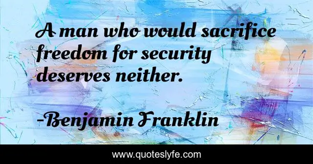 "Benjamin Franklin Quotes." Quoteslyfe.com, 2025. Sat. 06 Dec. 2025. <https://www.quoteslyfe.com/quote/A-man-who-would-sacrifice-freedom-for-240708>.