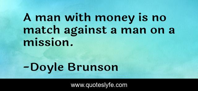 This page presents the quote "A man with money is no match against a man on a mission.". Author of this quote is Doyle Brunson. This quote is about mission, match, man,.