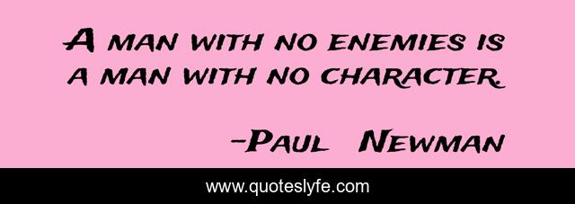 This page presents the quote "A man with no enemies is a man with no character.". Author of this quote is Paul Newman. This quote is about character, enemies,.