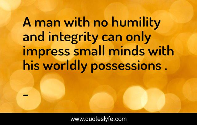 This page presents the quote "A man with no humility and integrity can only impress small minds with his worldly possessions .". Author of this quote is . This quote is about impressing-small-minds, edmond-mbiaka, impress, a-with-no-humility, a-man-of-no-integrity, worldly-possessions,.