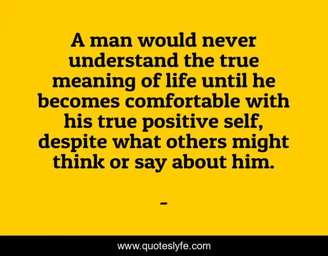 This page presents the quote "A man would never understand the true meaning of life until he becomes comfortable with his true positive self, despite what others might think or say about him.". Author of this quote is . This quote is about what-other-say-or-think, life, the-true-meaning-of-life, your-true-positive-self, what-people-say-or-think, edmond-mbiaka, the-meaning-of-life, your-positive-self,.