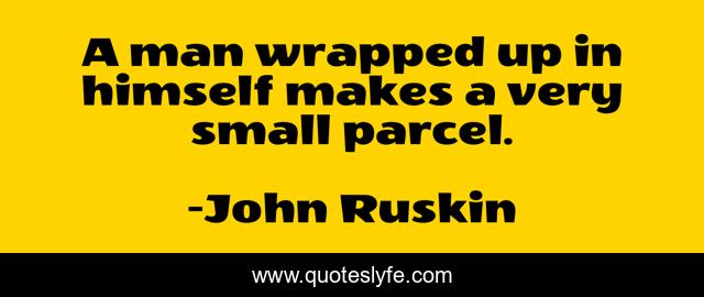 This page presents the quote "A man wrapped up in himself makes a very small parcel.". Author of this quote is John Ruskin. This quote is about introspection, self-importance, psychology, self-involvement,.