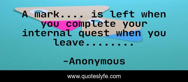 This page presents the quote "A mark.... is left when you complete your internal quest when you leave........". Author of this quote is Anonymous. This quote is about mark, inspired, quest, life, goal,.