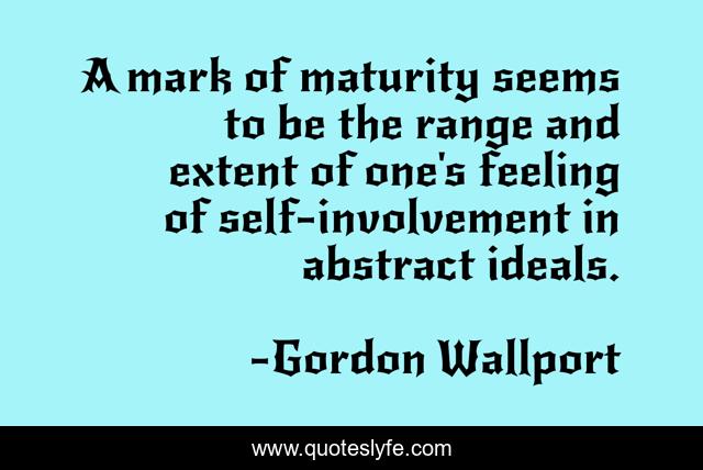 This page presents the quote "A mark of maturity seems to be the range and extent of one's feeling of self-involvement in abstract ideals.". Author of this quote is Gordon Wallport. .