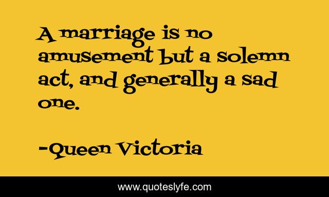 This page presents the quote "A marriage is no amusement but a solemn act, and generally a sad one.". Author of this quote is Queen Victoria. This quote is about sad, amusement, act,.