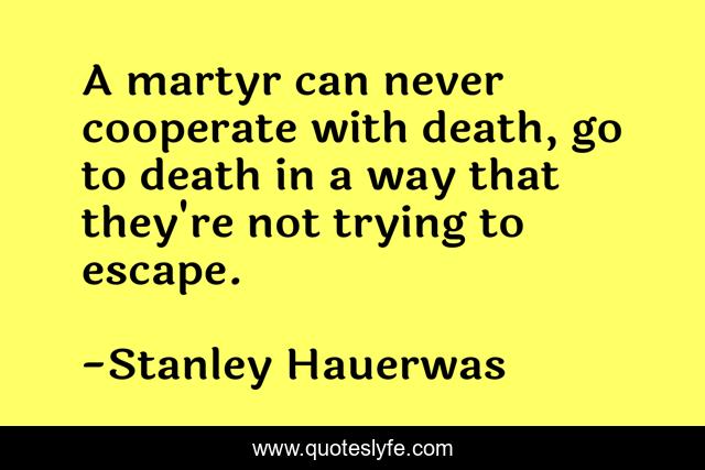 "Stanley Hauerwas Quotes." Quoteslyfe.com, 2025. Mon. 08 Dec. 2025. <https://www.quoteslyfe.com/quote/A-martyr-can-never-cooperate-with-death-295029>.