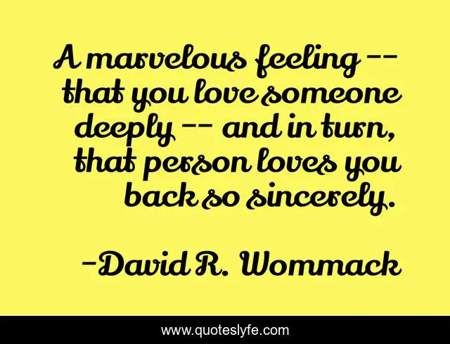 This page presents the quote "A marvelous feeling -- that you love someone deeply -- and in turn, that person loves you back so sincerely.". Author of this quote is David R. Wommack. .