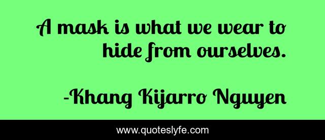"Khang Kijarro Nguyen Quotes." Quoteslyfe.com, 2025. Fri. 05 Dec. 2025. <https://www.quoteslyfe.com/quote/A-mask-is-what-we-wear-to-171452>.