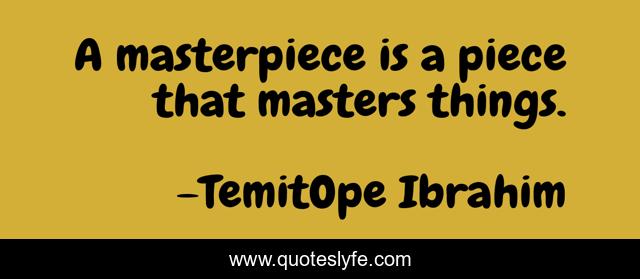 "TemitOpe Ibrahim Quotes." Quoteslyfe.com, 2025. Sat. 06 Dec. 2025. <https://www.quoteslyfe.com/quote/A-masterpiece-is-a-piece-that-masters-84051>.