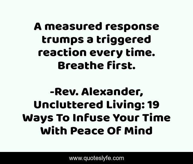 "Rev. Alexander, Uncluttered Living: 19 Ways To Infuse Your Time With Peace Of Mind Quotes." Quoteslyfe.com, 2025. Fri. 05 Dec. 2025. <https://www.quoteslyfe.com/quote/A-measured-response-trumps-a-triggered-reaction-243759>.
