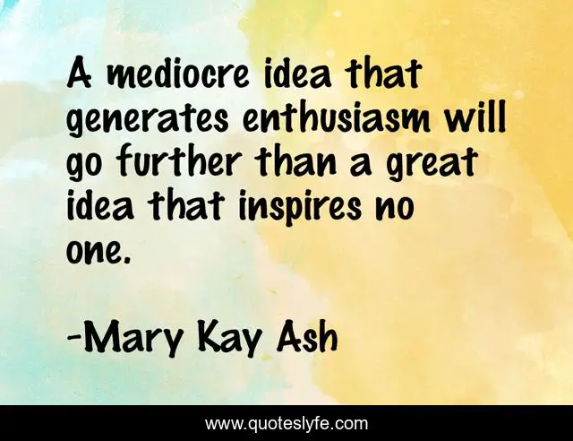 "Mary Kay Ash Quotes." Quoteslyfe.com, 2025. Sat. 06 Dec. 2025. <https://www.quoteslyfe.com/quote/A-mediocre-idea-that-generates-enthusiasm-will-312532>.