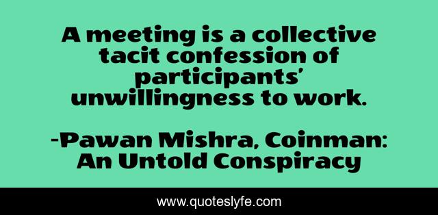 "Pawan Mishra, Coinman: An Untold Conspiracy Quotes." Quoteslyfe.com, 2025. Mon. 08 Dec. 2025. <https://www.quoteslyfe.com/quote/A-meeting-is-a-collective-tacit-confession-64992>.