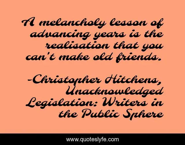 This page presents the quote "A melancholy lesson of advancing years is the realisation that you can't make old friends.". Author of this quote is Christopher Hitchens, Unacknowledged Legislation: Writers in the Public Sphere. This quote is about ageing, friendship,.