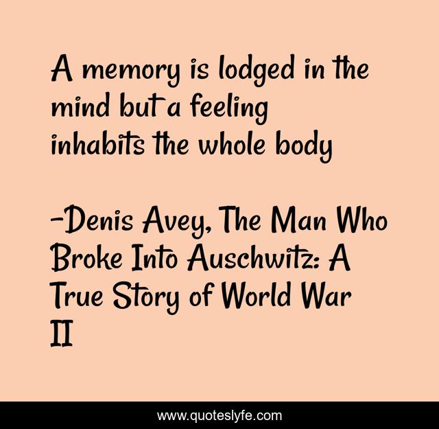 This page presents the quote "A memory is lodged in the mind but a feeling inhabits the whole body". Author of this quote is Denis Avey, The Man Who Broke Into Auschwitz: A True Story of World War II. .