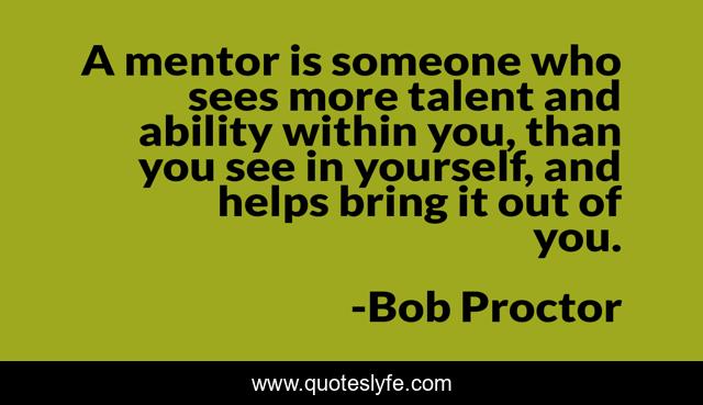 This page presents the quote "A mentor is someone who sees more talent and ability within you, than you see in yourself, and helps bring it out of you.". Author of this quote is Bob Proctor. This quote is about personal-growth, self-growth, self-development, personal-improvement, self-improvement, self-help, personal-development,.