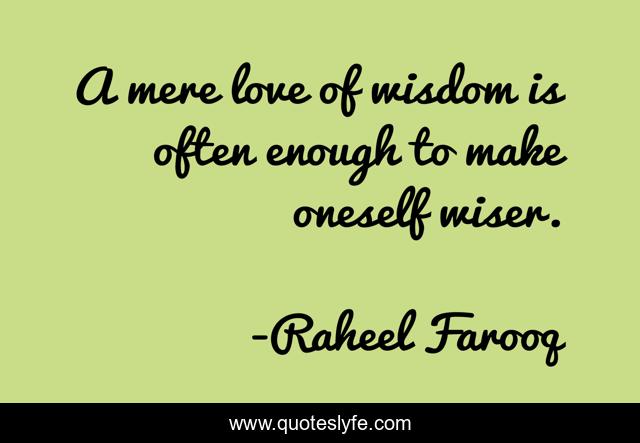 This page presents the quote "A mere love of wisdom is often enough to make oneself wiser.". Author of this quote is Raheel Farooq. This quote is about love-of-wisdom, wisdom-inspirational, wisdom,.