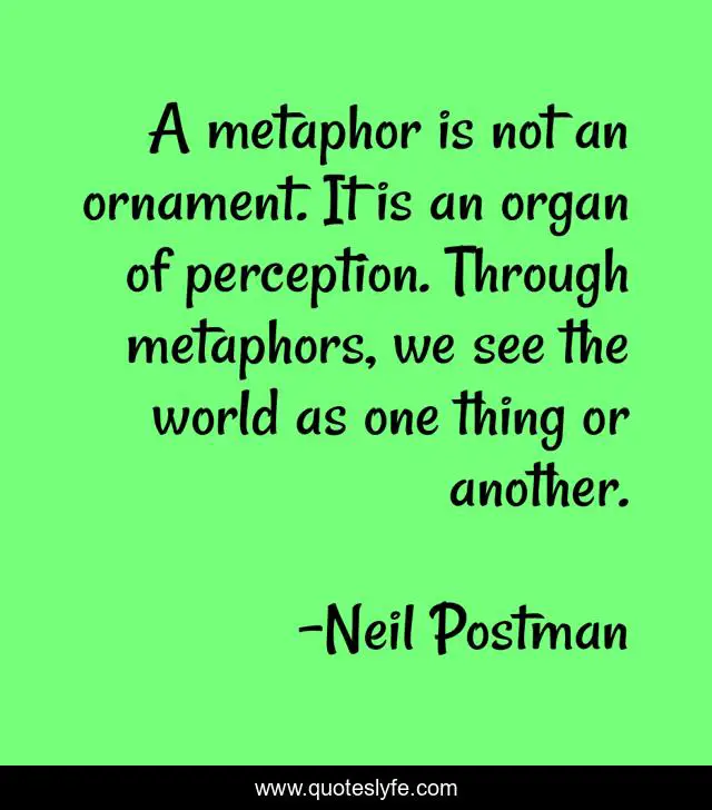 "Neil Postman Quotes." Quoteslyfe.com, 2025. Fri. 05 Dec. 2025. <https://www.quoteslyfe.com/quote/A-metaphor-is-not-an-ornament-It-113164>.