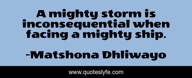 "Matshona Dhliwayo Quotes." Quoteslyfe.com, 2025. Fri. 05 Dec. 2025. <https://www.quoteslyfe.com/quote/A-mighty-storm-is-inconsequential-when-facing-83457>.