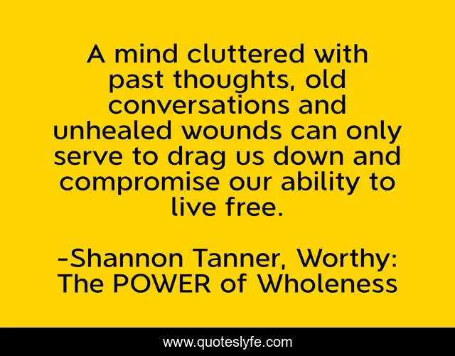 "Shannon Tanner, Worthy: The POWER of Wholeness Quotes." Quoteslyfe.com, 2025. Mon. 08 Dec. 2025. <https://www.quoteslyfe.com/quote/A-mind-cluttered-with-past-thoughts-old-192281>.