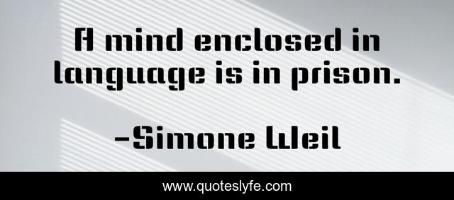 This page presents the quote "A mind enclosed in language is in prison.". Author of this quote is Simone Weil. This quote is about language, prison,.
