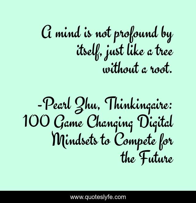 This page presents the quote "A mind is not profound by itself, just like a tree without a root.". Author of this quote is Pearl Zhu, Thinkingaire: 100 Game Changing Digital Mindsets to Compete for the Future. This quote is about thinking, mind,.