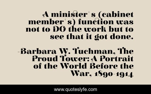 "Barbara W. Tuchman, The Proud Tower: A Portrait of the World Before the War, 1890-1914 Quotes." Quoteslyfe.com, 2025. Mon. 08 Dec. 2025. <https://www.quoteslyfe.com/quote/A-minister-s-cabinet-member-s-function-64771>.