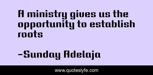 This page presents the quote "A ministry gives us the opportunity to establish roots". Author of this quote is Sunday Adelaja. This quote is about jesus, prosperity, reality-of-life, wealth, success, ministry, money, riches, labor,.
