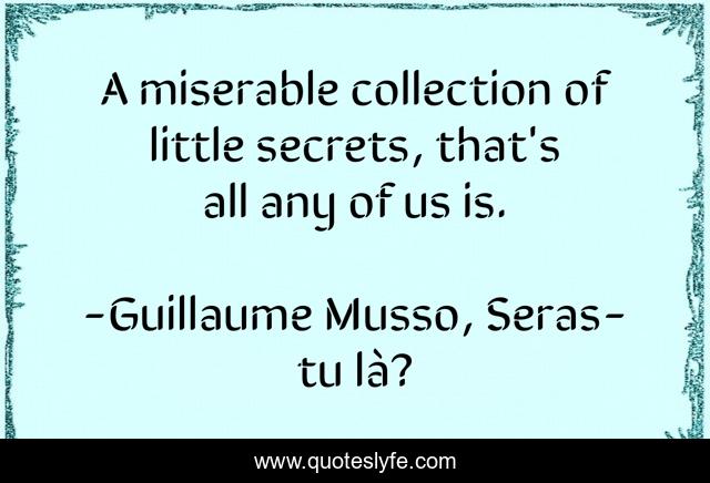 This page presents the quote "A miserable collection of little secrets, that's all any of us is.". Author of this quote is Guillaume Musso, Seras-tu là?. .