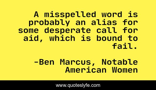 "Ben Marcus, Notable American Women Quotes." Quoteslyfe.com, 2025. Sat. 06 Dec. 2025. <https://www.quoteslyfe.com/quote/A-misspelled-word-is-probably-an-alias-159019>.