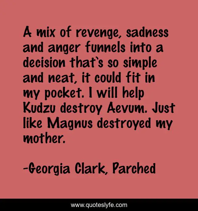 "Georgia Clark, Parched Quotes." Quoteslyfe.com, 2025. Fri. 05 Dec. 2025. <https://www.quoteslyfe.com/quote/A-mix-of-revenge-sadness-and-anger-157462>.