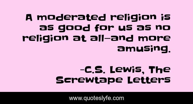 "C.S. Lewis, The Screwtape Letters Quotes." Quoteslyfe.com, 2025. Sat. 06 Dec. 2025. <https://www.quoteslyfe.com/quote/A-moderated-religion-is-as-good-for-30065>.
