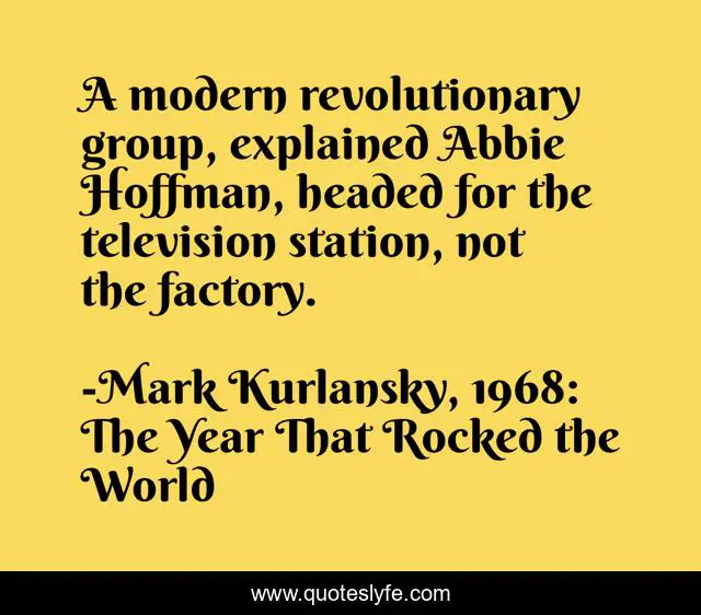 "Mark Kurlansky, 1968: The Year That Rocked the World Quotes." Quoteslyfe.com, 2025. Sat. 06 Dec. 2025. <https://www.quoteslyfe.com/quote/A-modern-revolutionary-group-explained-Abbie-Hoffman-160896>.