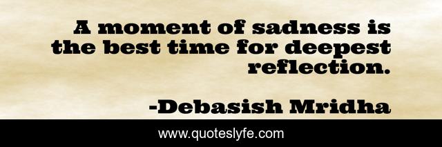 This page presents the quote "A moment of sadness is the best time for deepest reflection.". Author of this quote is Debasish Mridha. This quote is about life, love, knowledge, inspirational, intelligence, philosophy, wisdom, quotes, affection,.