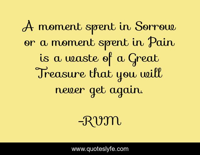 This page presents the quote "A moment spent in Sorrow or a moment spent in Pain is a waste of a Great Treasure that you will never get again.". Author of this quote is RVM. This quote is about motivation, inspiration,.