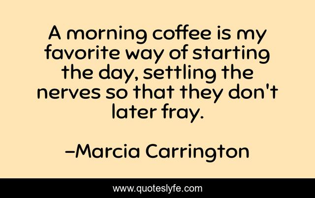 This page presents the quote "A morning coffee is my favorite way of starting the day, settling the nerves so that they don't later fray.". Author of this quote is Marcia Carrington. This quote is about human-nature, coffee, habits, humor, morning,.