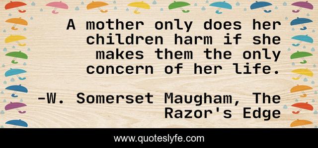 "W. Somerset Maugham, The Razor's Edge Quotes." Quoteslyfe.com, 2025. Fri. 05 Dec. 2025. <https://www.quoteslyfe.com/quote/A-mother-only-does-her-children-harm-213327>.