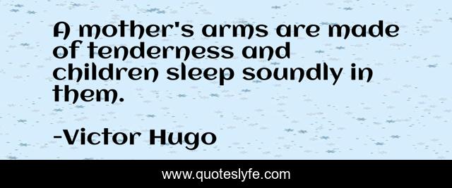 This page presents the quote "A mother's arms are made of tenderness and children sleep soundly in them.". Author of this quote is Victor Hugo. This quote is about sleep, children, mother,.