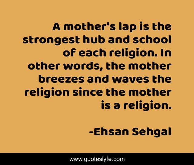 This page presents the quote "A mother's lap is the strongest hub and school of each religion. In other words, the mother breezes and waves the religion since the mother is a religion.". Author of this quote is Ehsan Sehgal. .