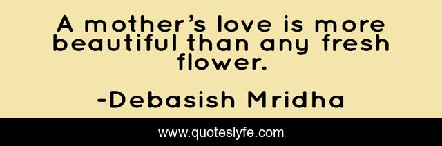 This page presents the quote "A mother’s love is more beautiful than any fresh flower.". Author of this quote is Debasish Mridha. This quote is about love, philosophy, debasish-mridha, debasish-mridha-m-d, quotes, inspirational, enthusiasm, mothers-love, affection,.