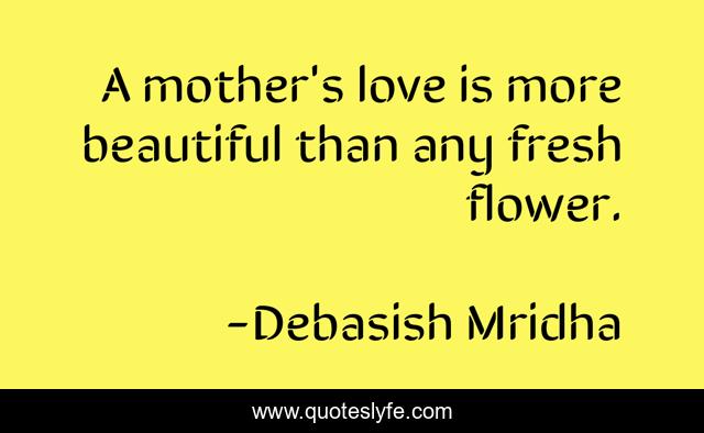 This page presents the quote "A mother's love is more beautiful than any fresh flower.". Author of this quote is Debasish Mridha. This quote is about beautiful-flower, love, mridha, debasish, debasish-mridha, philosophy, mother-s-love, affection,.