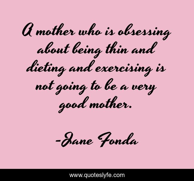 This page presents the quote "A mother who is obsessing about being thin and dieting and exercising is not going to be a very good mother.". Author of this quote is Jane Fonda. This quote is about good, going, mother,.