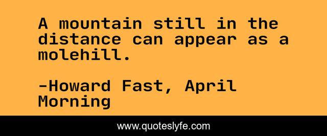 This page presents the quote "A mountain still in the distance can appear as a molehill.". Author of this quote is Howard Fast, April Morning. This quote is about witticism, perspective,.