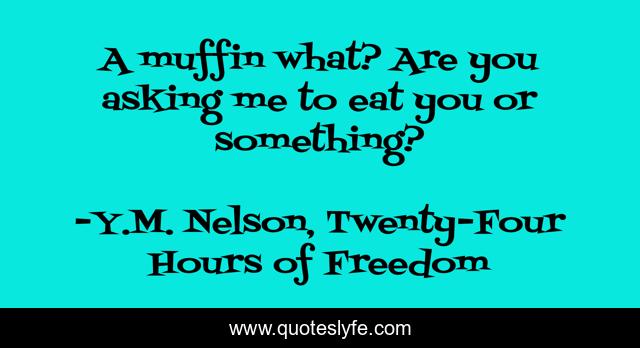 This page presents the quote "A muffin what? Are you asking me to eat you or something?". Author of this quote is Y.M. Nelson, Twenty-Four Hours of Freedom. This quote is about humorous, humor,.