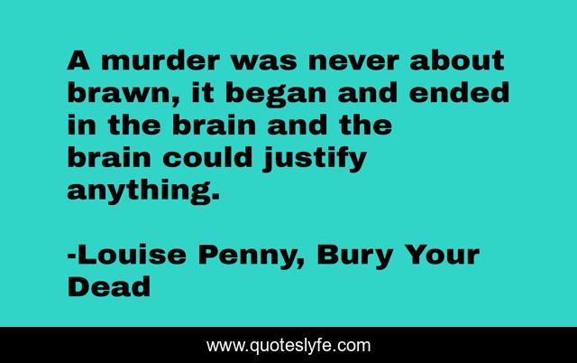 This page presents the quote "A murder was never about brawn, it began and ended in the brain and the brain could justify anything.". Author of this quote is Louise Penny, Bury Your Dead. This quote is about brain, murder,.